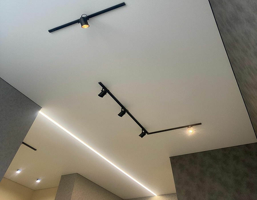 Трековая освещение - система, в которой светильники крепятся и передвигаются по шинопроводу, возможность изменять направление света.